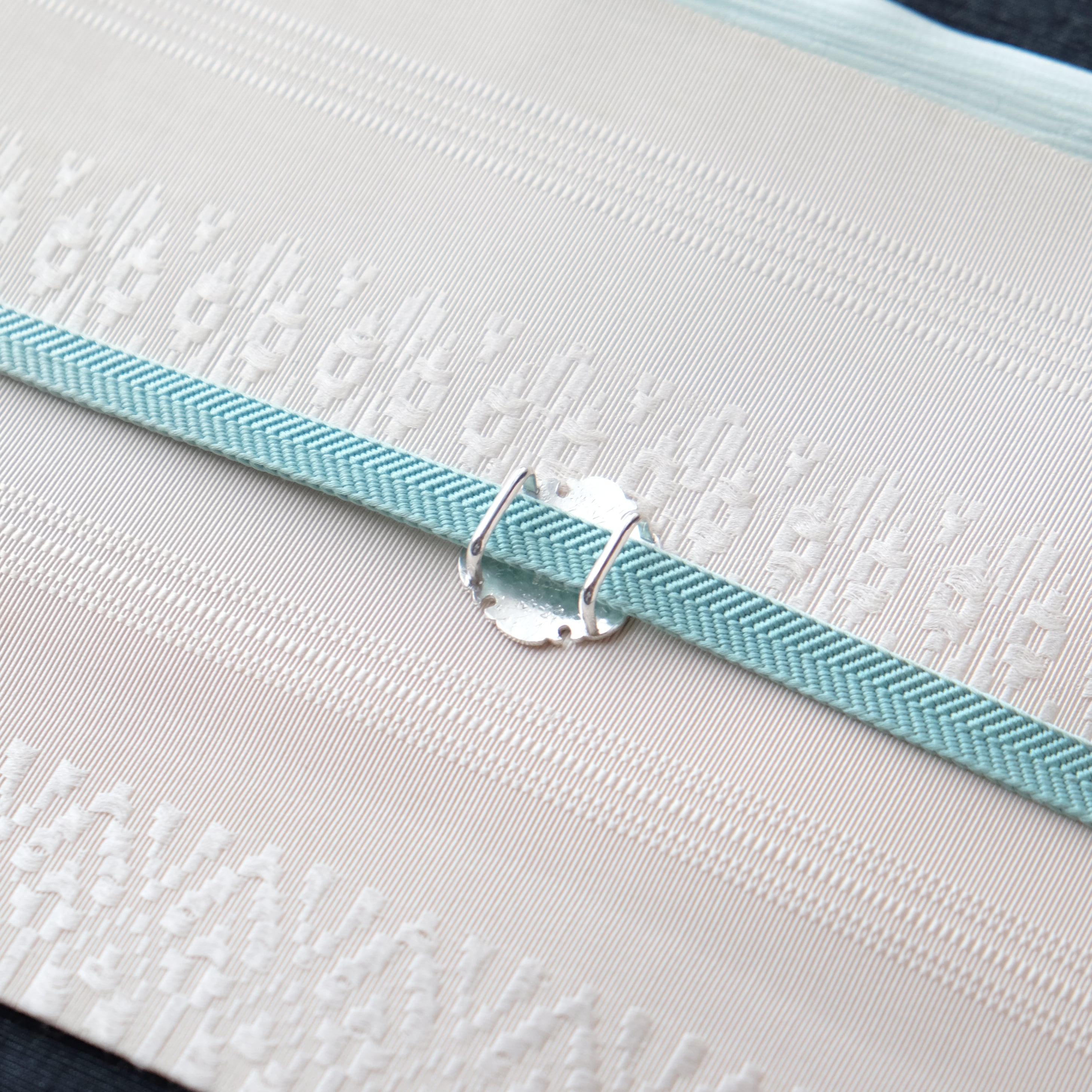 *大きさの参考に三分紐(幅9mm)の上に置いて撮影しました。
