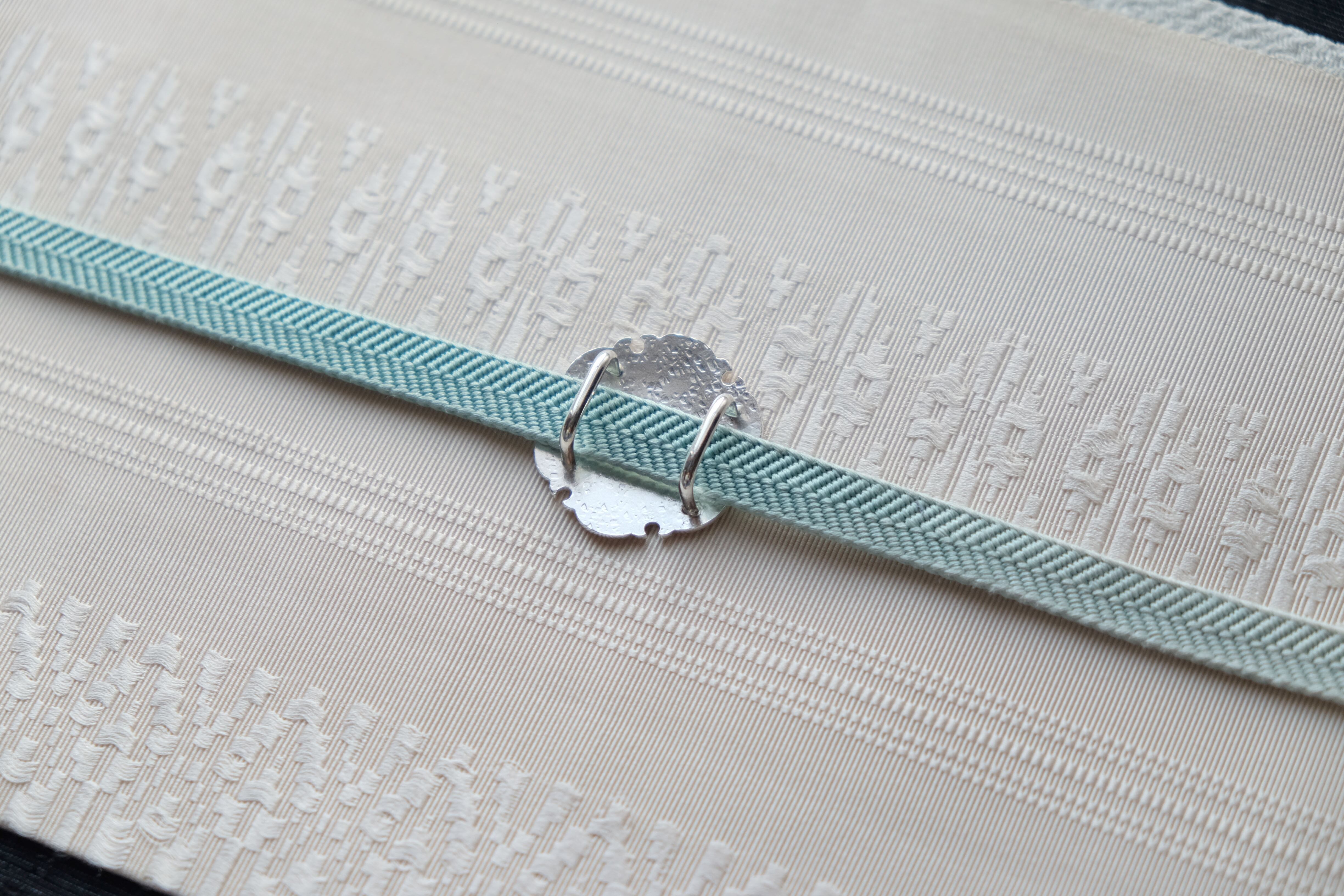 *大きさの参考に三分紐(幅9mm)の上に置いて撮影しました。