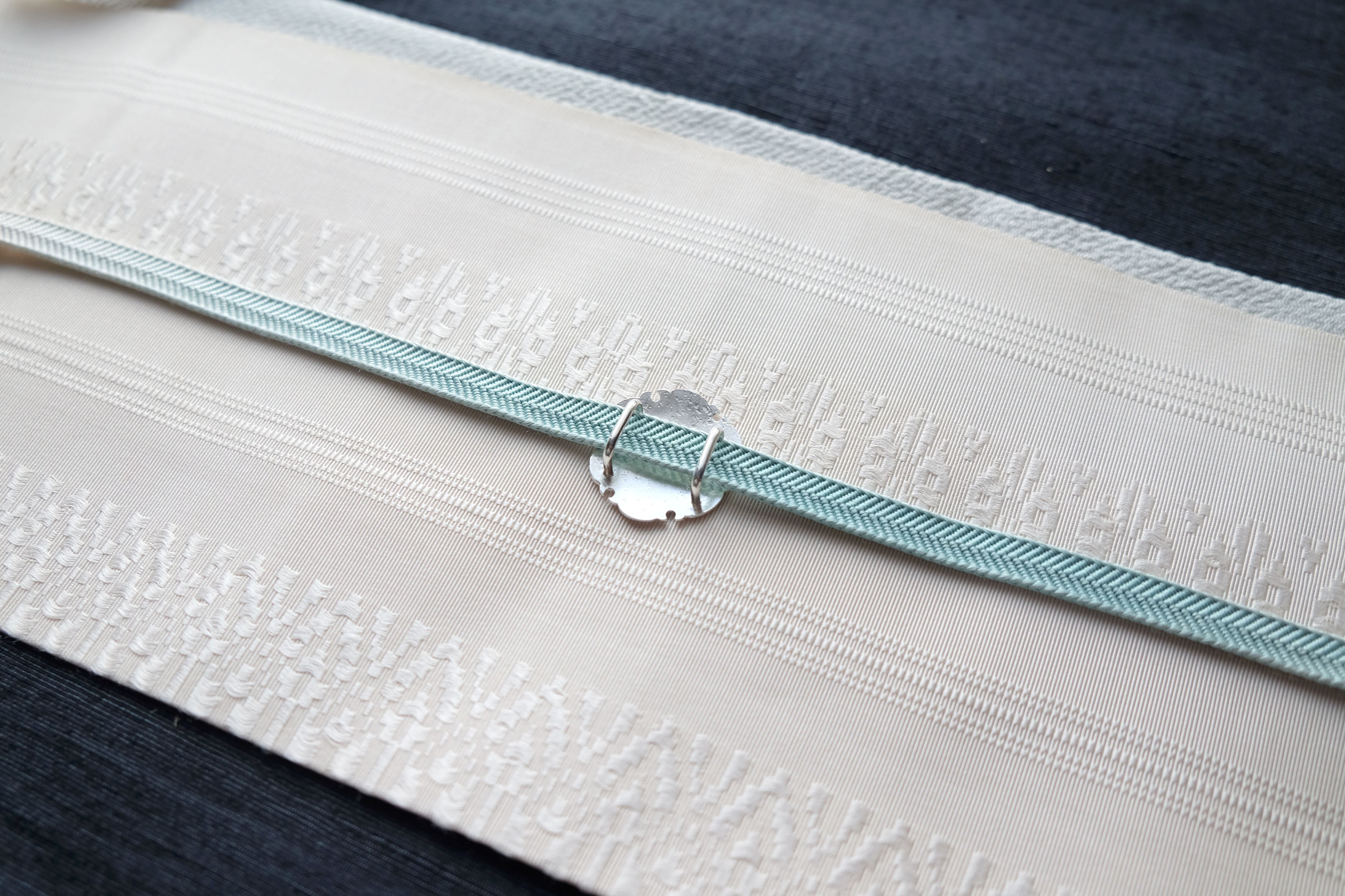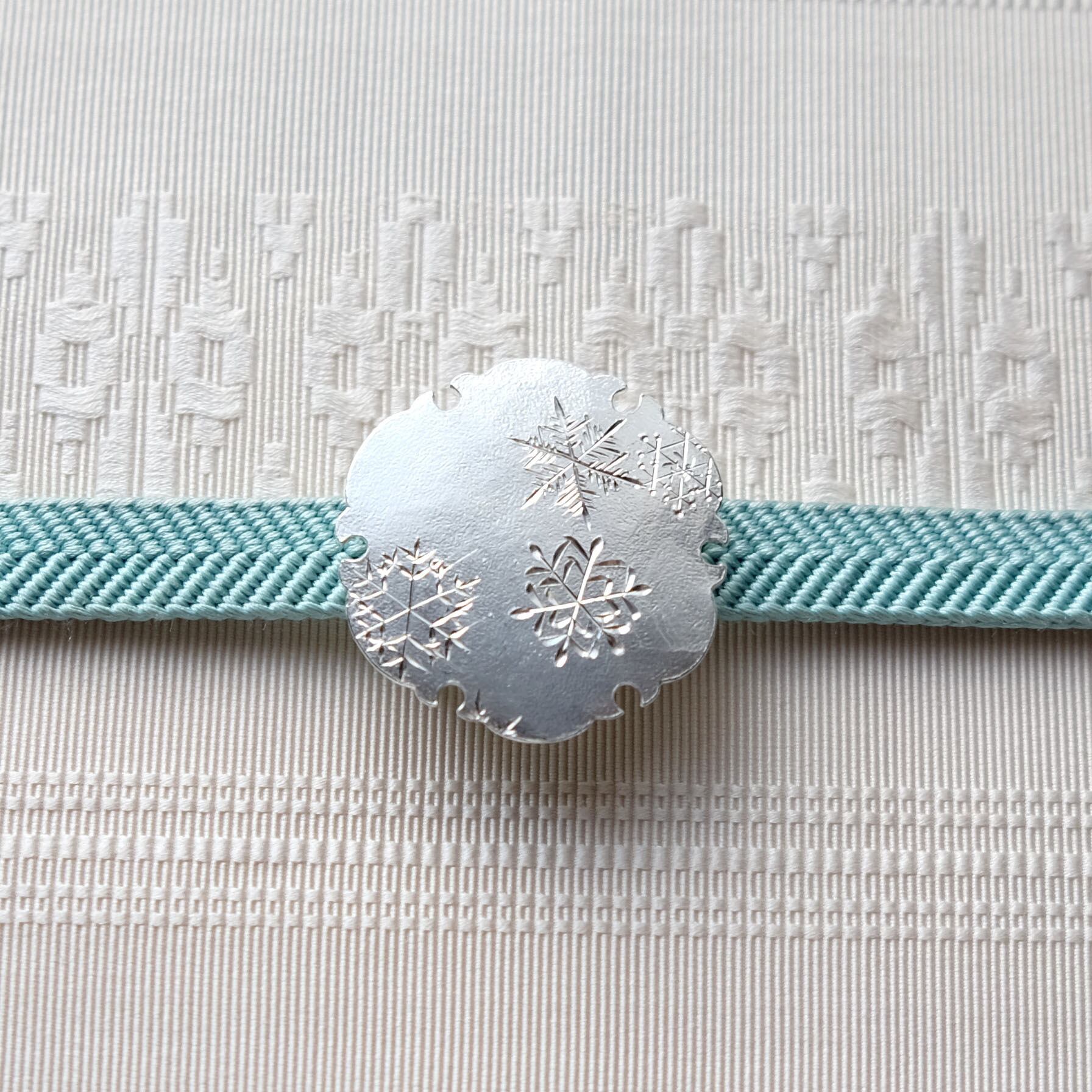 *大きさの参考に三分紐(幅9mm)の上に置いて撮影しました。