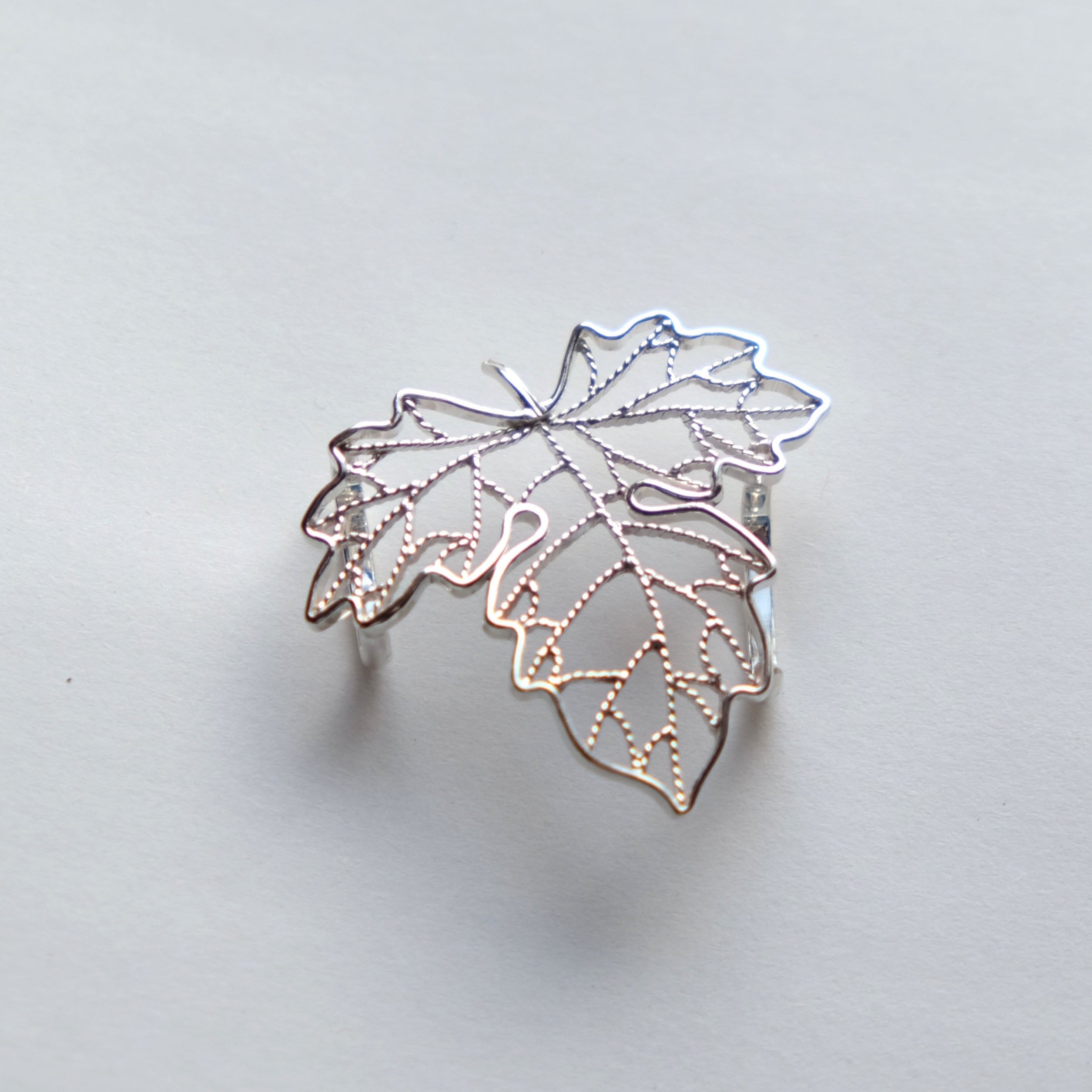 庭で見かけた野葡萄の葉っぱを銀線で作り