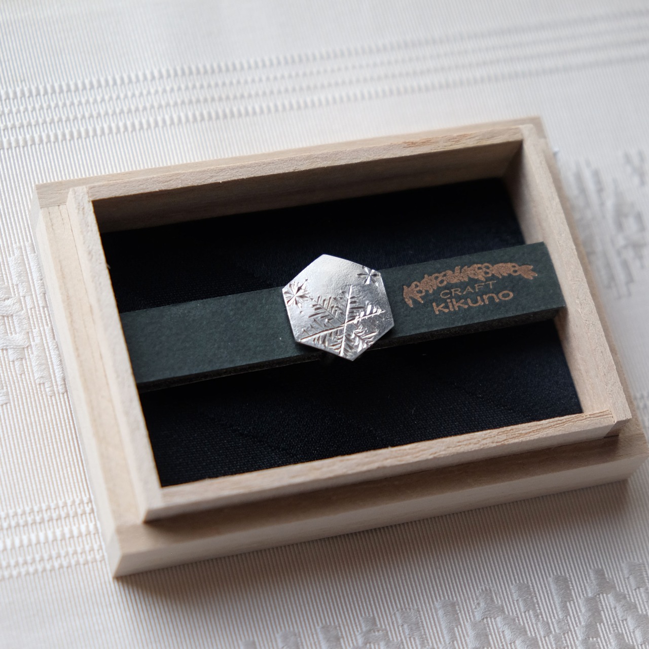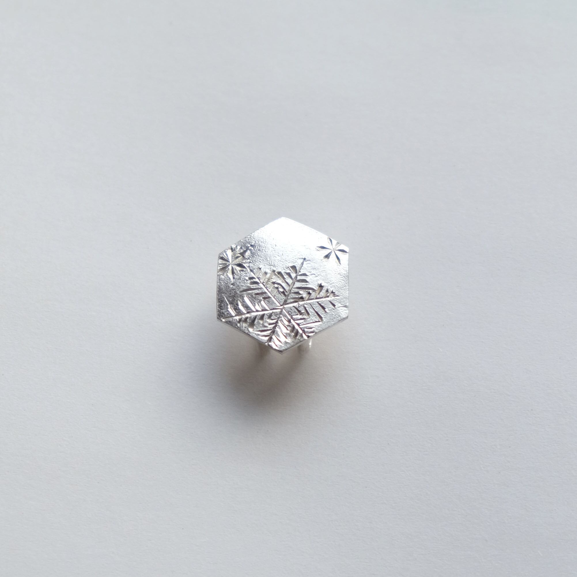 六角形に雪の模様を手彫りした一点物です。