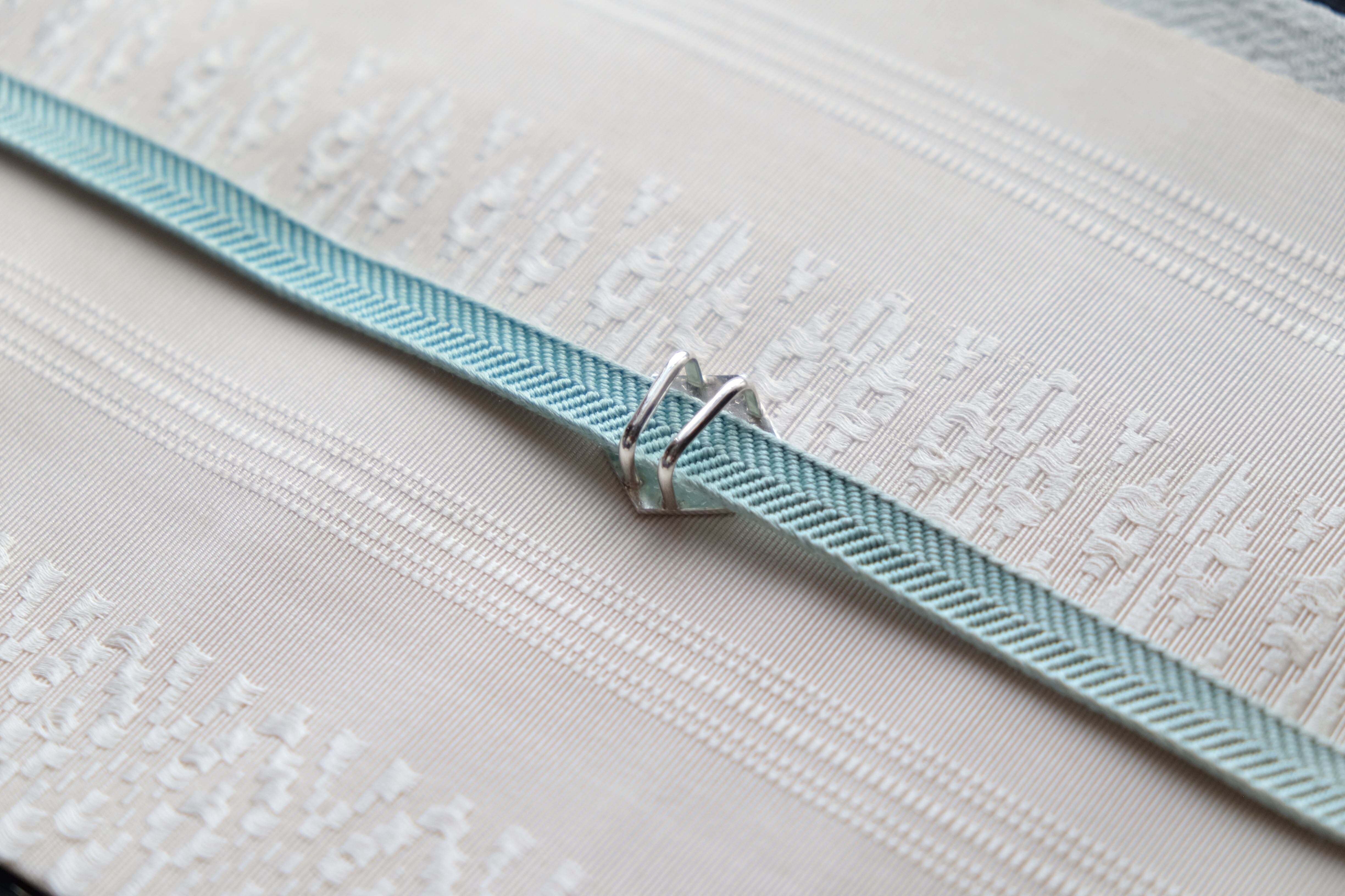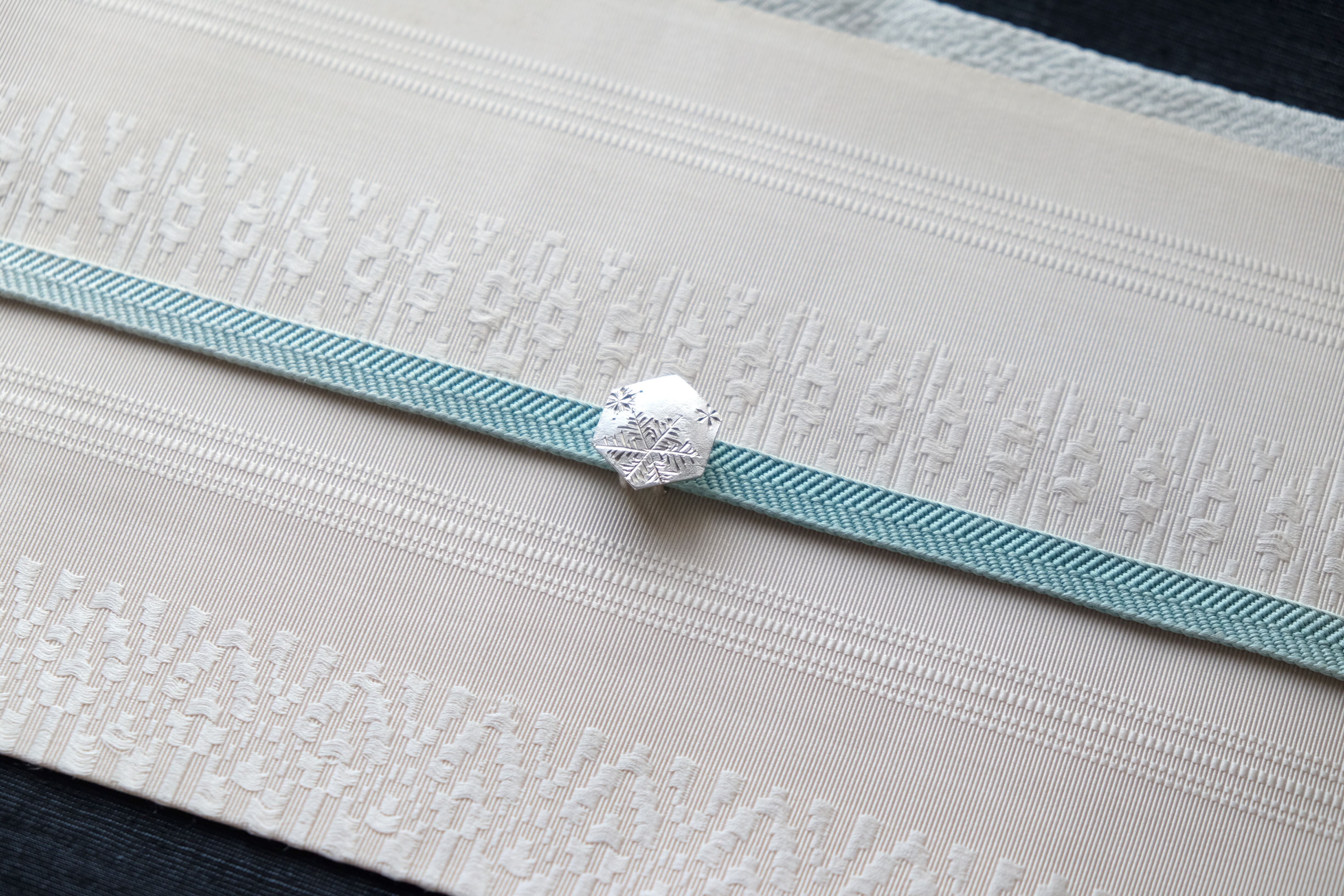*大きさの参考に三分紐(幅9mm)の上に置いて撮影しました。