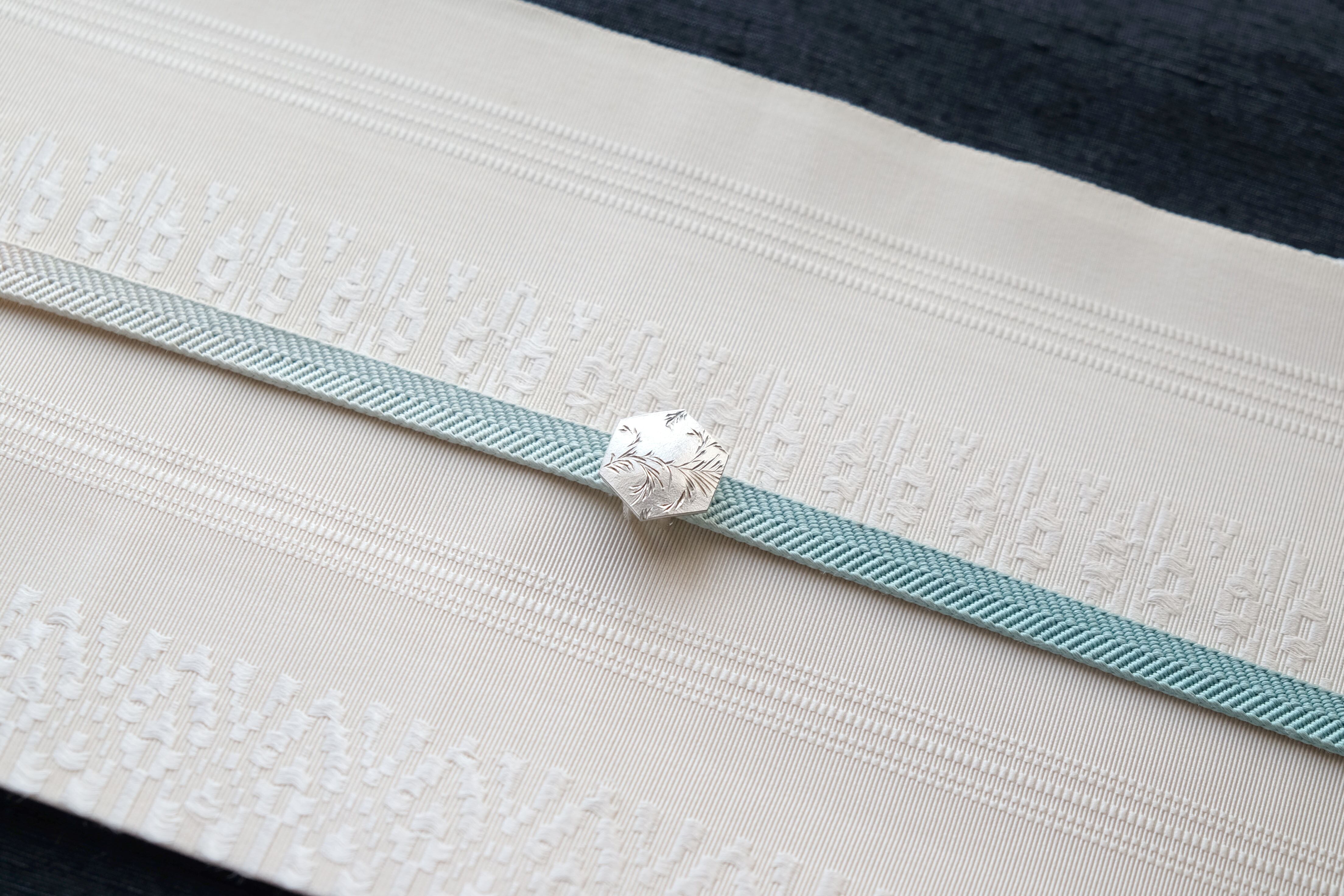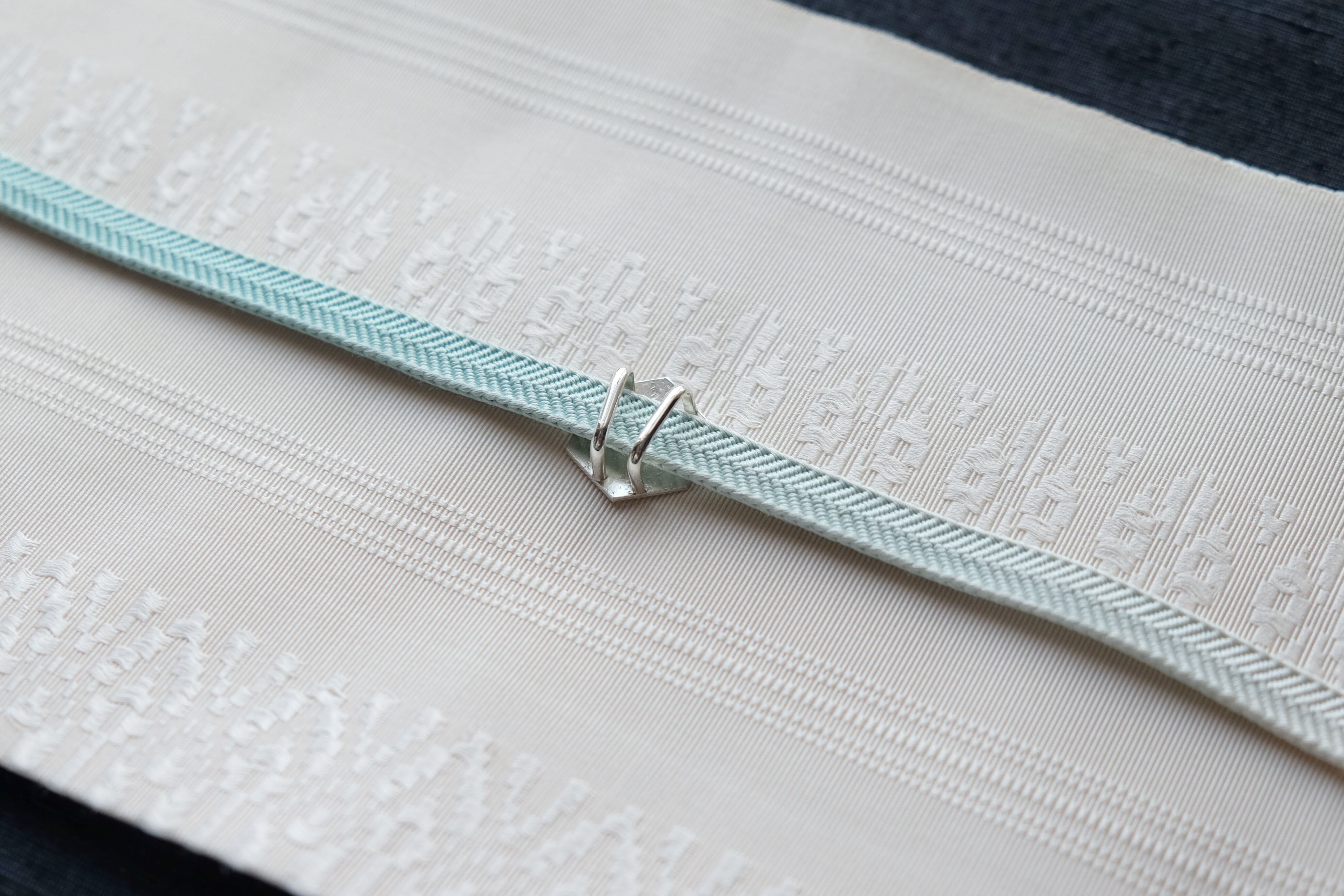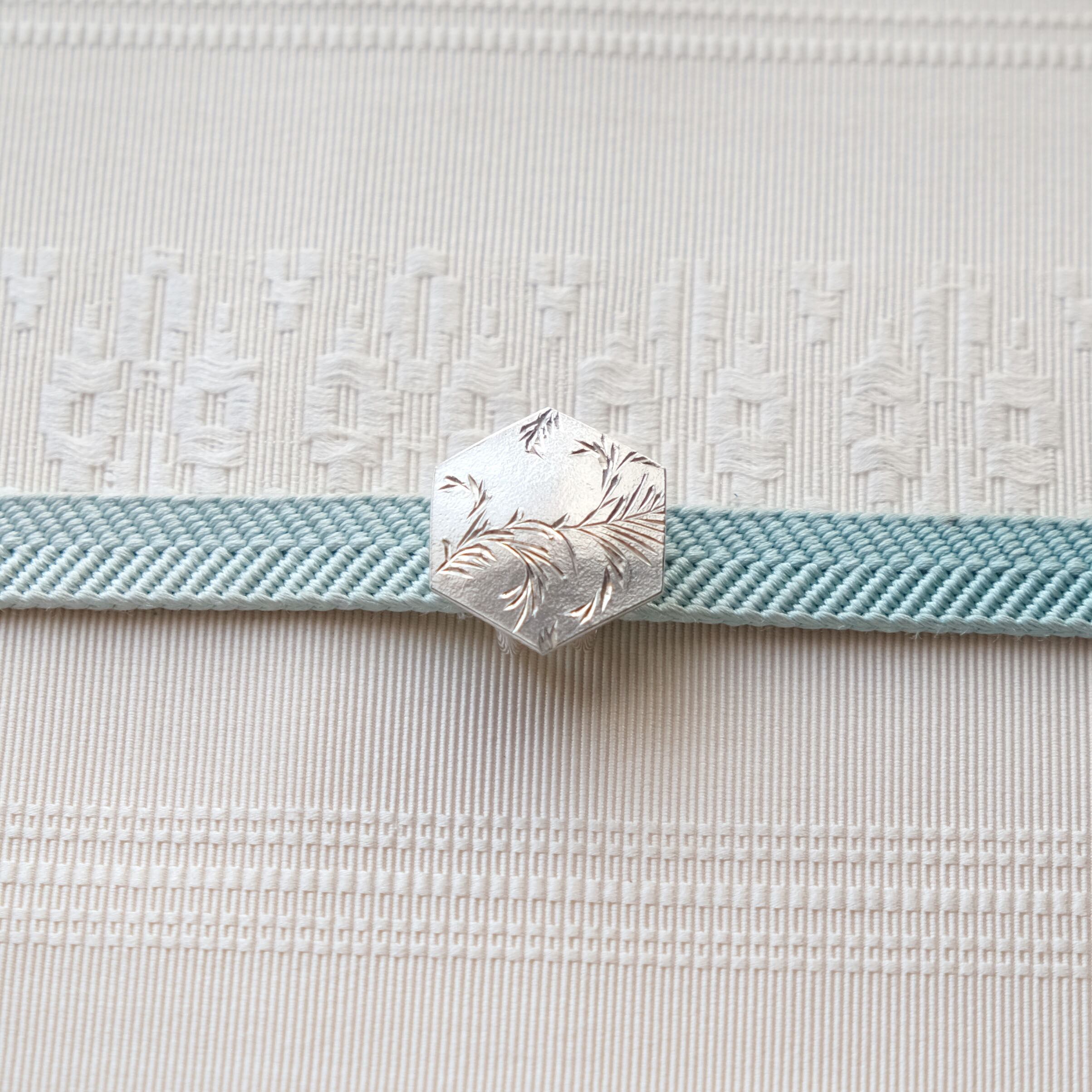 *大きさの参考に三分紐(幅9mm)の上に置いて撮影しました。