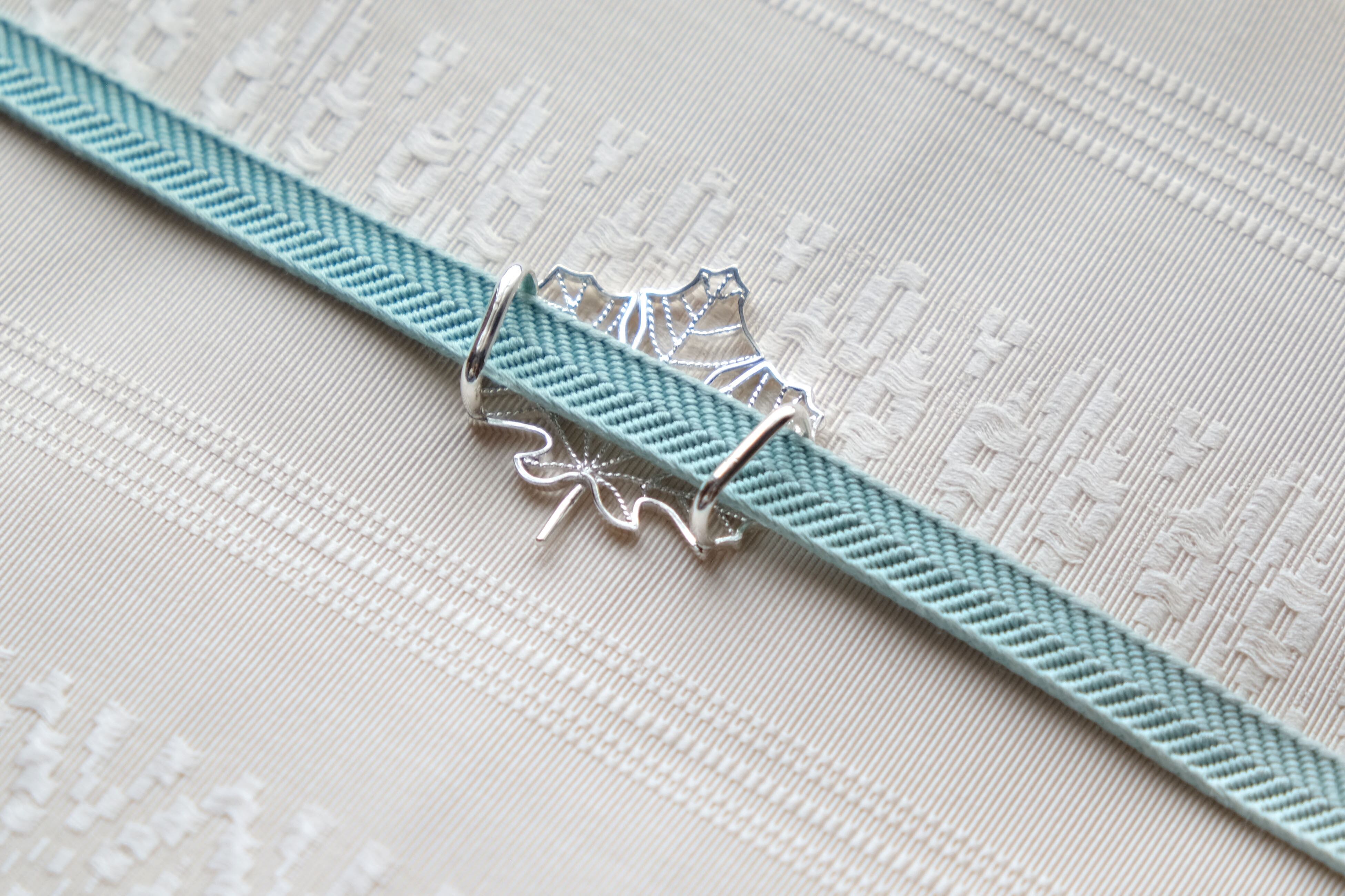 *大きさの参考に三分紐(幅9mm)の上に置いて撮影しました。