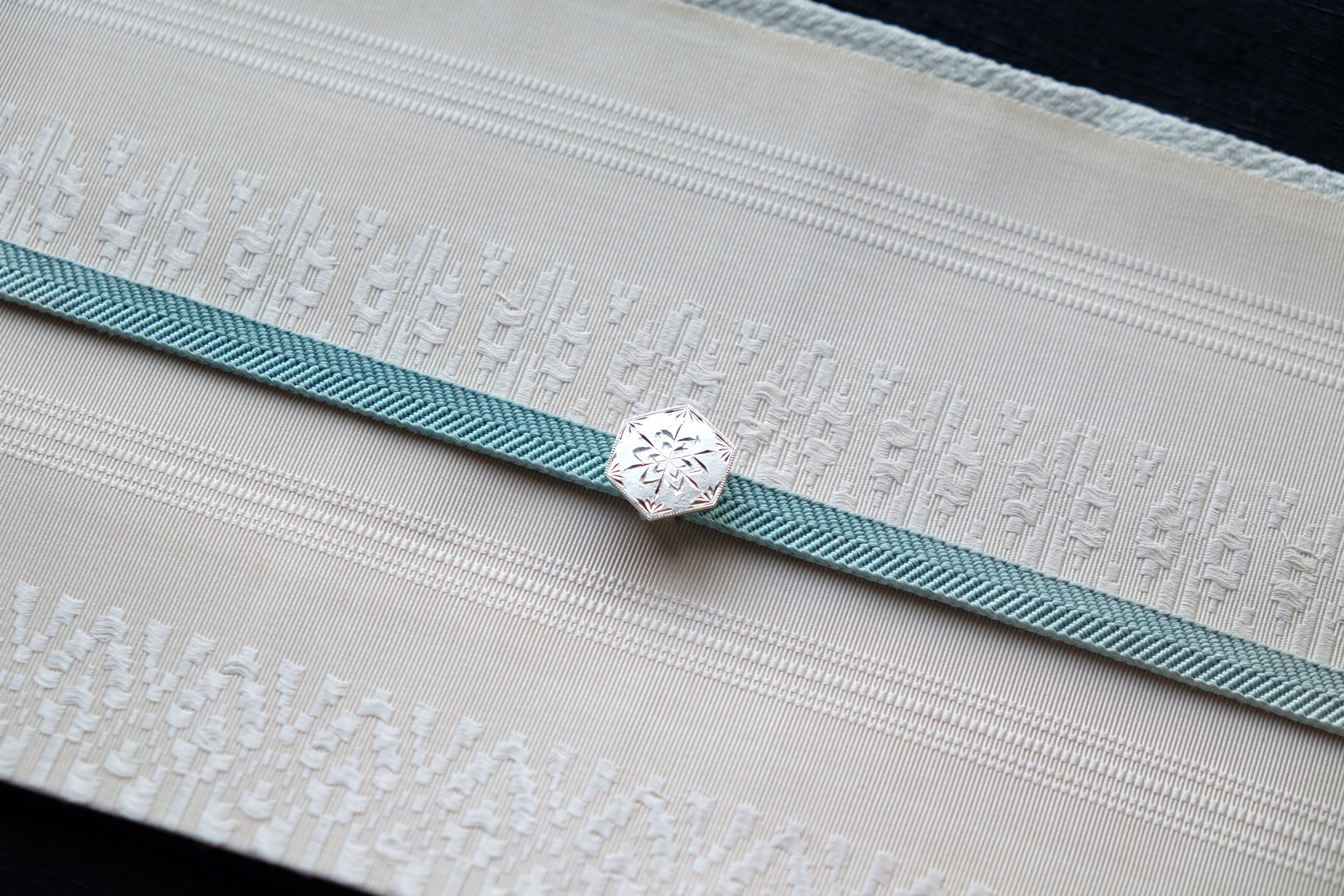 *大きさの参考に三分紐(幅9mm)の上に置いて撮影しました。