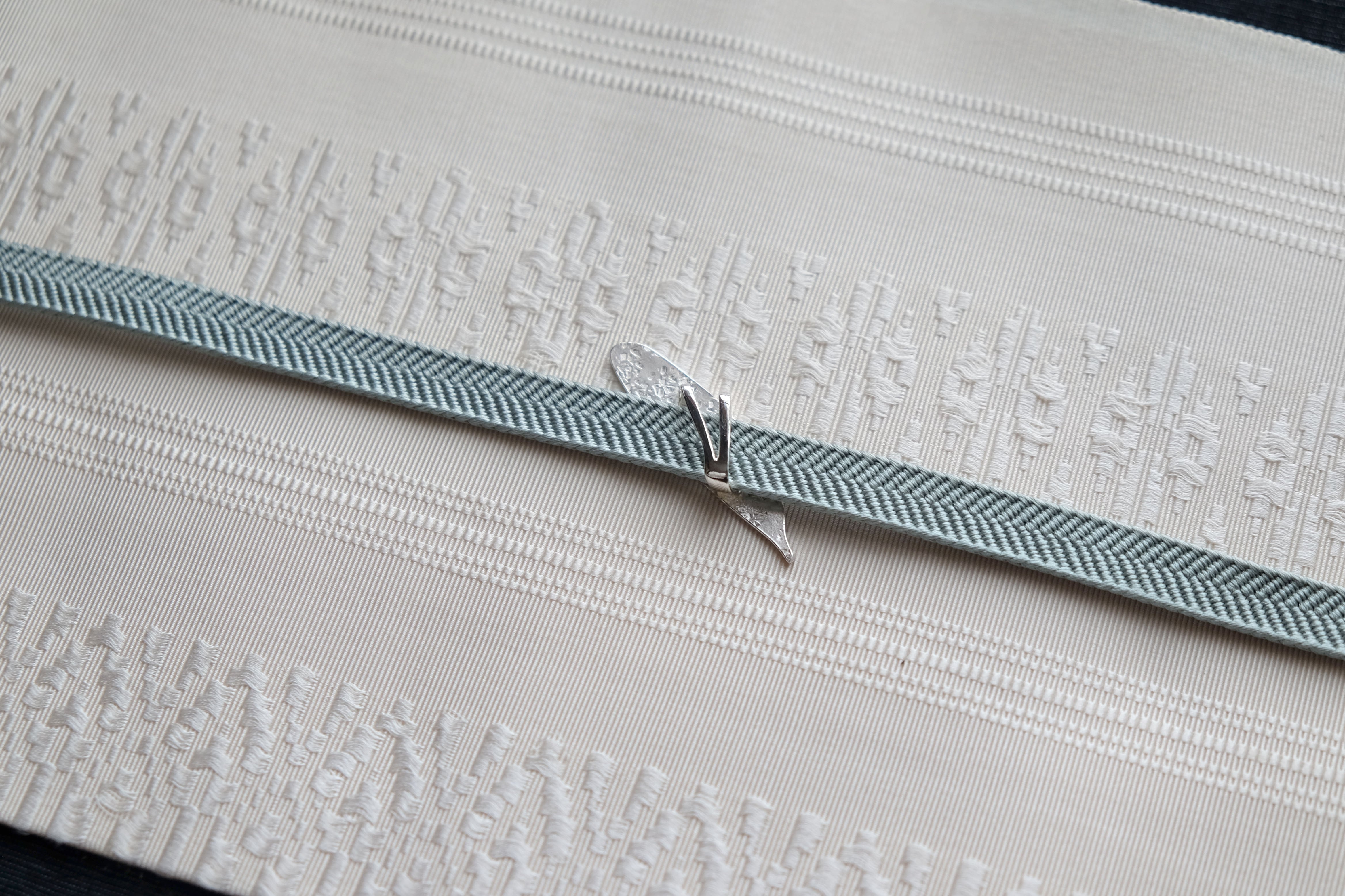 *大きさの参考に三分紐(幅9mm)の上に置いて撮影しました。